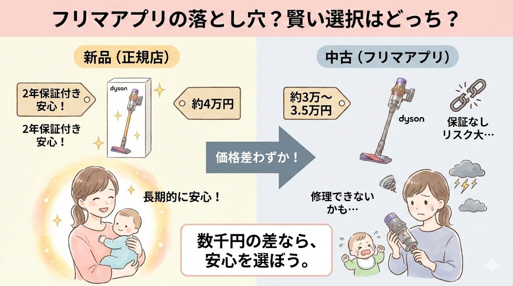 高額の家電であるダイソンを、個人のやり取りで購入するのは正直おすすめできません。